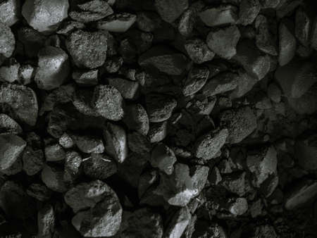 Black road stones gravel texture. Rocks for construction, dark background of crushed granite gravel, small rocks, wallpaper