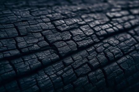 A detailed examination of burned wood reveals unique textures and patterns created through charring and heat exposure.