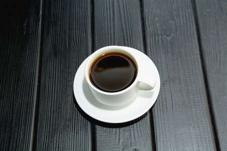 Cup of black coffee on wood background