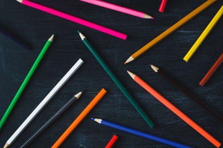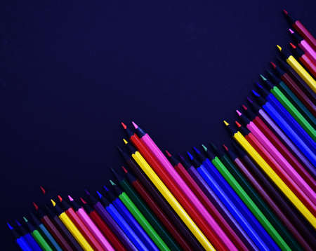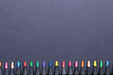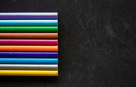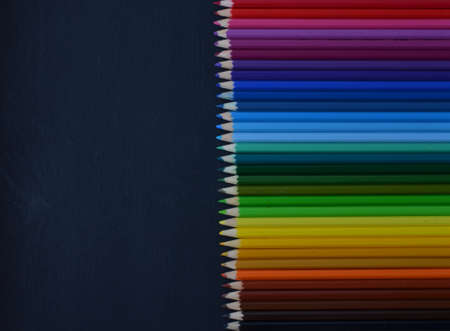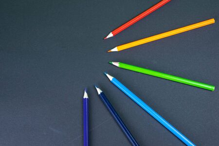Color pencils on dark background. Top view with copy space