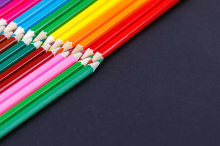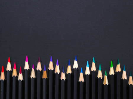 Pattern of Colorful Many colored pencils on a black background and copy space