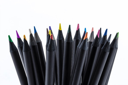 Black color pencils Many different colored with white background.