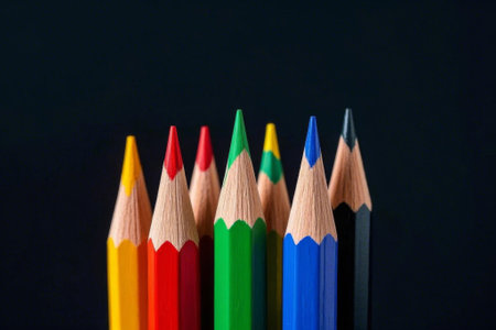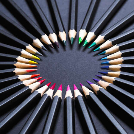 colored pencils on dark background with copy space