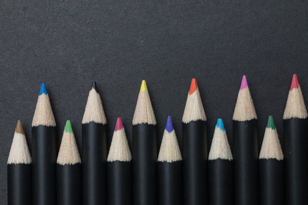 Close up macro shot of color pencil pile pencil nibs on dark background | Stand out from others