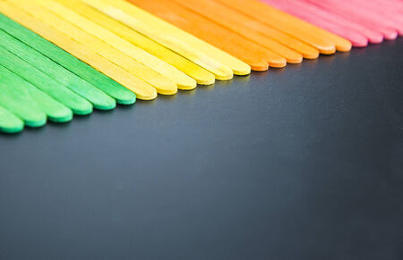 Colorful stripes wooden lay by sequence layer on black board