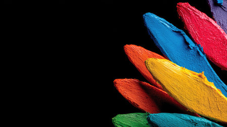 Vibrant brushstrokes creating an abstract texture against a black backdrop