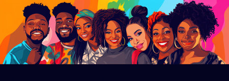 Group of happy african american young people. Vector illustration.