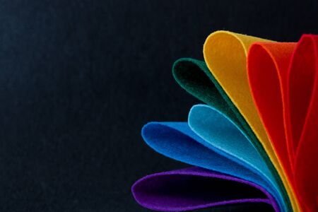 flower, petals, folded felt on a black wet background lgbt sivol rainbow bright color