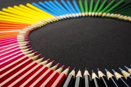 Colored pencil set arranged on black
