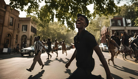 Active African American Demonstration Focused on Social Justice in Urban Area During Daylight Hours.