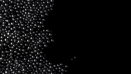 Wave of black shine balls from left side on black background. Glossy spheres fill the volume. Luxury Black caviar flow. 3D render illustration