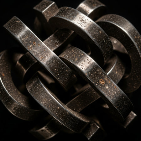 Abstract, high-angle, top-down view of an intricate metallic sculpture symbolizing unity and connect