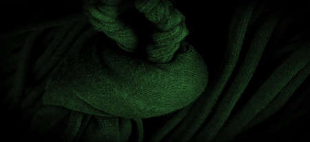 This macro image showcases intertwined fabric ropes in dark green and black shades, highlighting intricate textures and patterns, perfect for design and creative projects.
