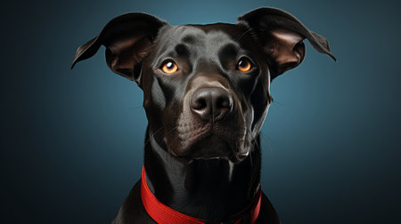 A close up of a black dog with a red collar. Generative AI image.