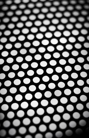 Black and white background of a grid of spotted. Pattern of round holes vintage style. Photo for web site slider.