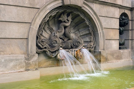 Fountain fish carp on Plaza Catalunya Barcelona, Spain