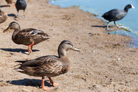 wild ducks during recreation, wild waterfowl on the territory of lakes, ducks in the natural environment