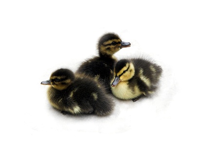 Funny yellow and black Duckling age days. Isolated on white.