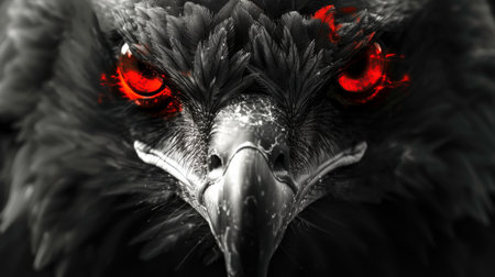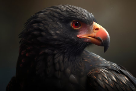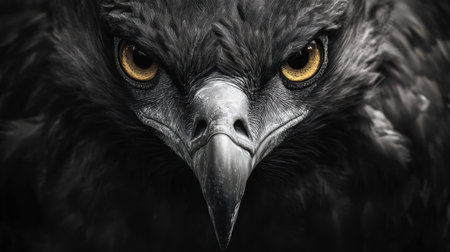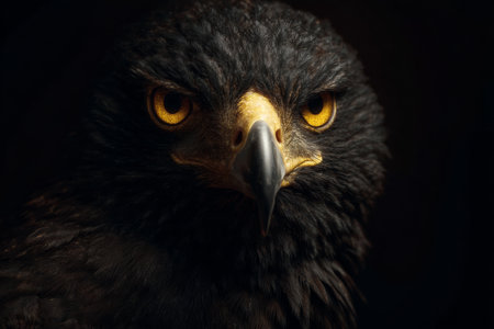 Close-Up Portrait of an Eagle, Intense Gaze, Sharp Beak, and Detailed Feathers on a Black Background