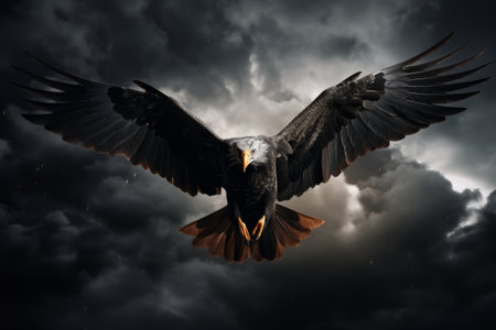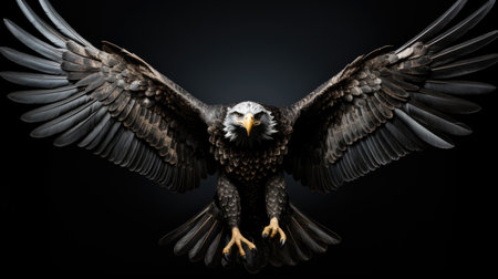 Stunning and fierce eagle on dark backdrop symbolizing strength and majesty. Concept Animal Photography, Eagle, Strength, Majesty, Dark Background