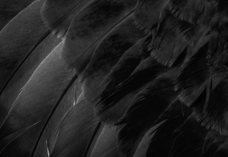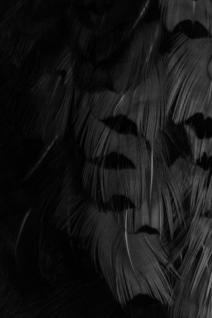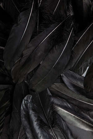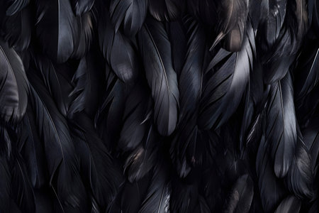 Soft black feathers layered in a close-up, creating a textured and mysterious aesthetic.