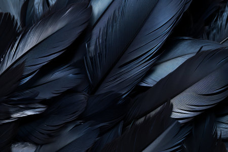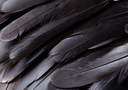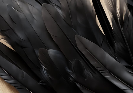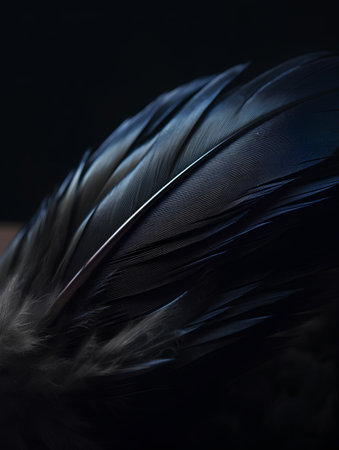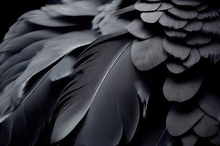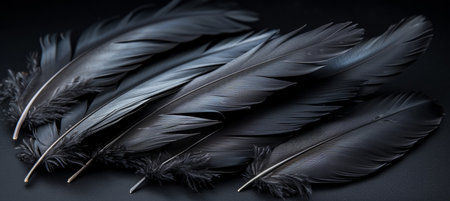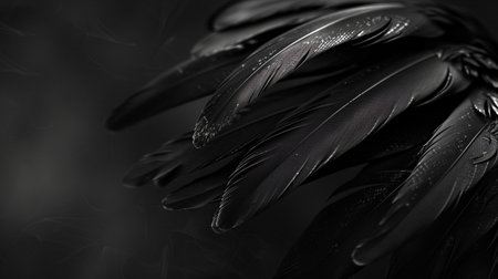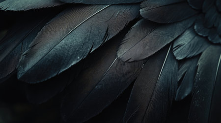 Detailed close-up of elegant black feathers showcasing intricate textures and a subtle sheen