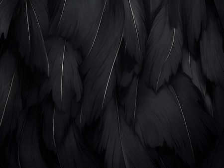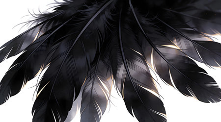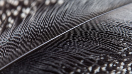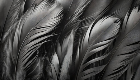 Elegant digital artwork featuring intricate feather textures with fine black filaments and subtle backlit glow for a moody, artistic depth. Ideal for gothic design projects, book covers, stationery patterns, luxury packaging, and creative textiles in publishing and fashion industries. This versatile, high-detail style enhances branding and decorative elements... AI-generated digital illustration. AI-generated illustration.
