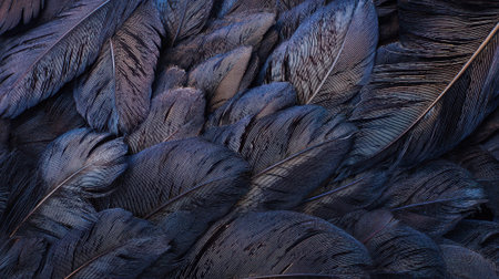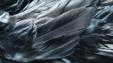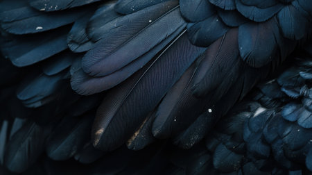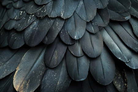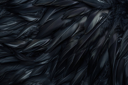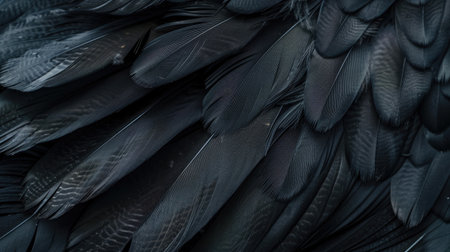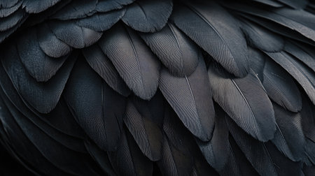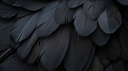 Explore the stunning details of a close-up shot showcasing dark feathers with intricate textures and a glossy sheen, perfect for nature enthusiasts.