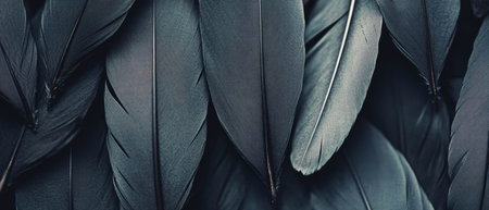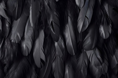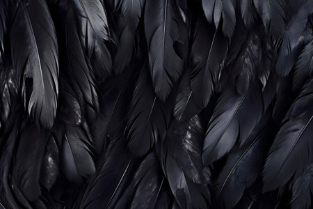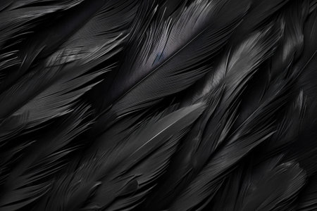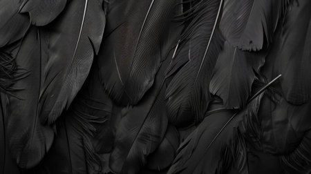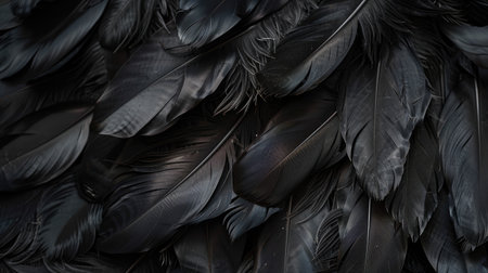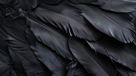 Close-up of black feathers forming a textured, abstract backdrop, ideal for artistic and creative projects