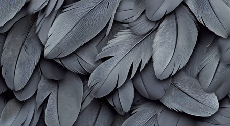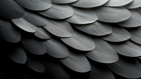 This image presents a detailed view of feathers, showcasing an arrangement of overlapping, grey scales. The texture is smooth with visible fine lines. The composition suggests an overhead perspective, possibly taken in daylight. Suitable for visual concepts and designs, the image is appropriate for various commercial applications.