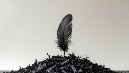AI Generated. Dark Feathers Ascending from Black Ash Pile