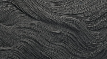 An abstract image showcases tightly woven, dark grey strands arranged in a dynamic pattern. The texture is complex, displaying undulating lines and curves under diffused lighting. The design suggests movement and depth, suitable for use in design or creative projects. This imagery could be applied in various commercial contexts.