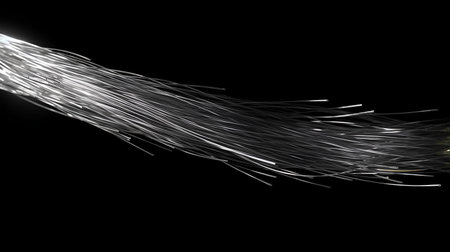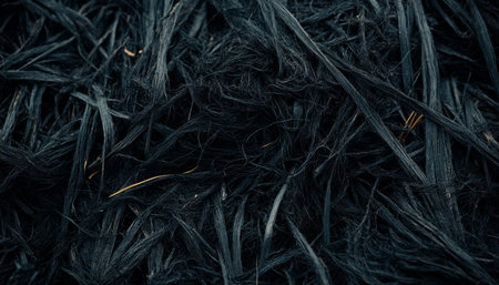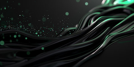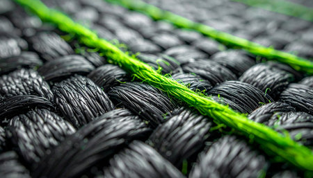 Textured black fibers with bright green highlights create a captivating visual effect, showing intricate details and a modern aesthetic in a creative composition