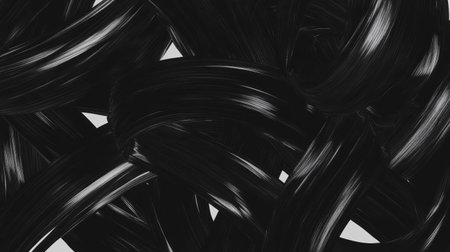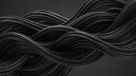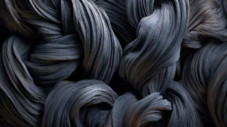 Elegant Dark Hair Waves Abstract Background Texture Design Luxury Flowing Shiny Smooth 3D Render art