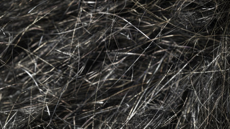 Intricate, detailed view of intertwined strands of gray hair showcasing texture and natural patterns. ideal for use in beauty industry materials emphasizing haircare, aging, or natural elegance concepts. Generative AI