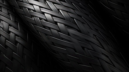 This captivating close-up image features a rich black woven texture, highlighting intricate patterns and depth. The monochrome design adds elegance and sophistication.