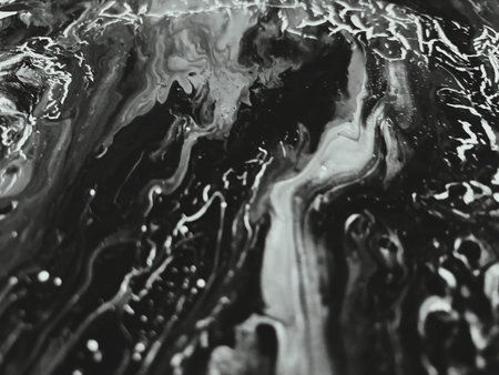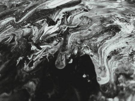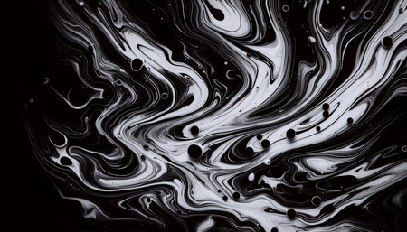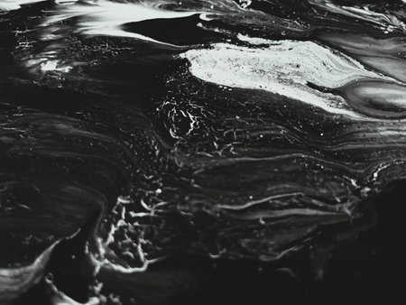 Black and white liquid texture. Ink marble pattern. Abstract monochrome background.