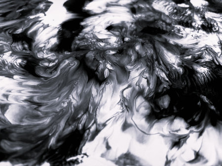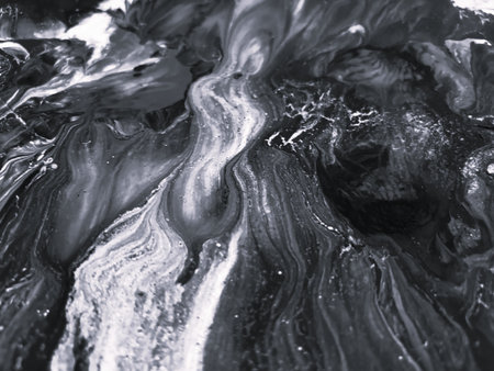 Close Up Black And White Colors Fluid Pouring Abstract Art Acrylic Painting Texture Background