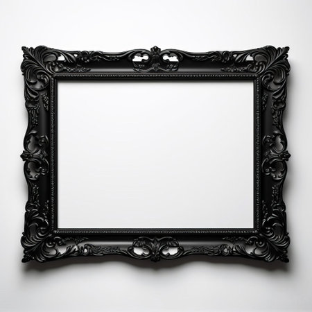 a black and ornate black frame is showcased against a crisp white background, embodying the unique style of health goth. this captivating photo captures elements of caravaggesque, meticulous realism, and eclectic curatorial style. the frame's design draws inspiration from rococo interiors, while the image itself exudes a rembrandt van rijn-like essence. shot with the sony alpha a1, this photo is a stunning blend of artistic