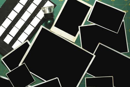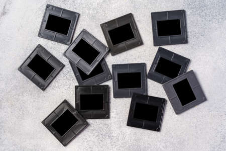 Photography empty slide frames on gray background
