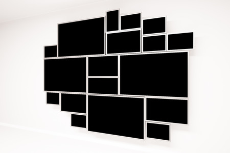 many blank black photo frames hanging on the wall, 3d rendering