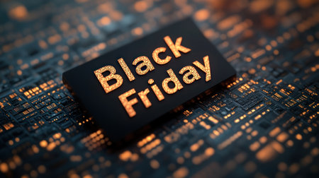 Vibrant text announces Black Friday amidst a sea of digital patterns and energy.