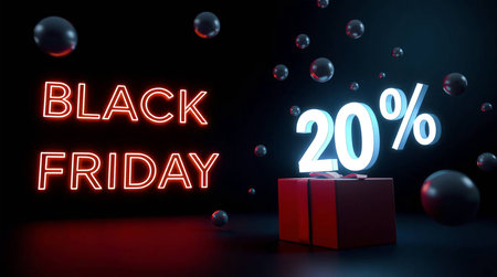 3d illustration of a sign for Black Friday. Black Friday sale design template. Illuminated banner.