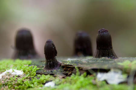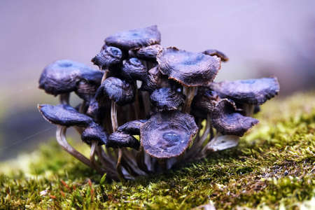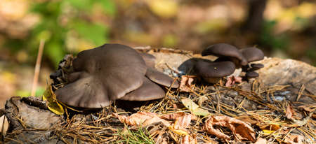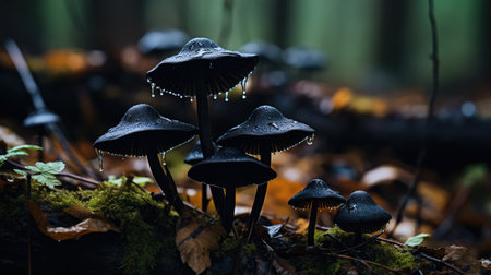 Black mushrooms in the forest. Selective focus. Shallow depth of field.