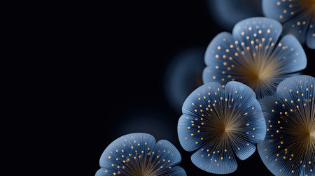 This stunning image features delicate blue flowers with intricate patterns set against a dark background, perfect for various artistic and decorative uses.
