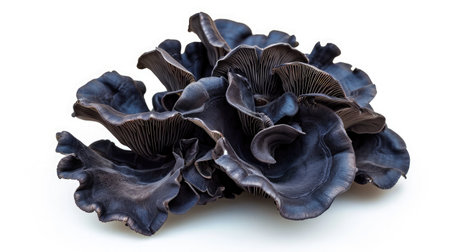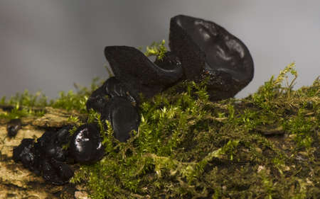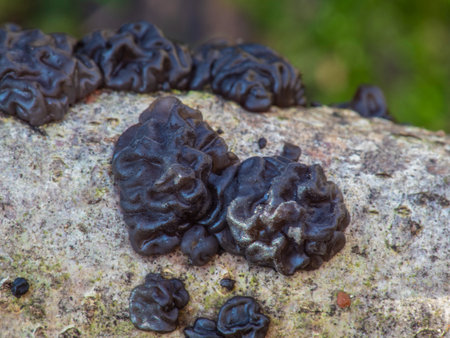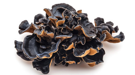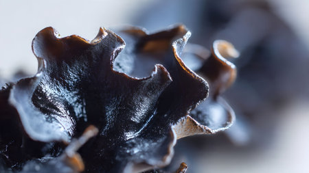 Close-up of black fungus, also known as wood ear mushroom, showcasing its unique texture and color.