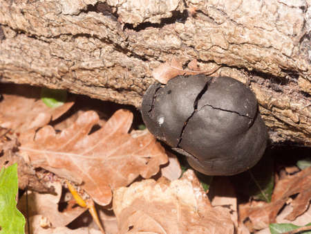 A Black Bit of Fungus on the Side of Tree Bark in the Forest on the Floor