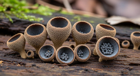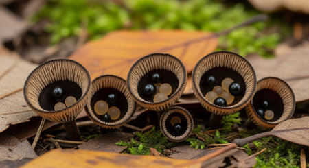 Mushrooms thrive on rich soil with varied textures and colors in natures habitat