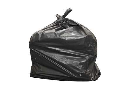 Black plastic garbage back on white background