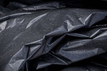 Black Plastic Garbage Bag Texture. Abstract Wrinkled Background of Plastic Garbage